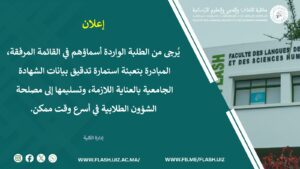 ماستر “الموارد والتنمية الترابية” /اللائحة النهائية للطلبة المقبولين برسم الموسم الجامعي 2025-2026 (التوقيت العادي)