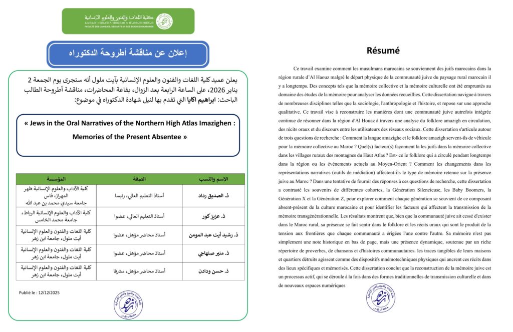 إعلان عن مناقشة أطروحة دكتوراه